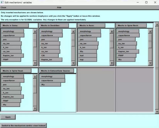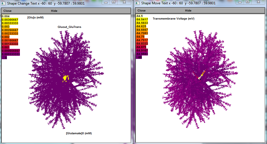 This BrainCell function can be performed by modifying settings in the BrainCell menu below titled ‘Membrane biophysics with glutamate transporters'. The latter fully monitors the dynamic membrane voltage landscape mapped onto the cell morphology.