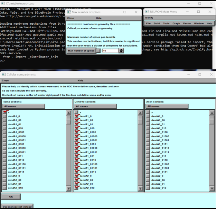 If you do not have NEURON and Anaconda installed or are experiencing issues with BrainCell after their installation, please follow these step-by-step instructions to set up NEURON with Anaconda correctly: