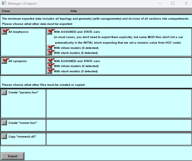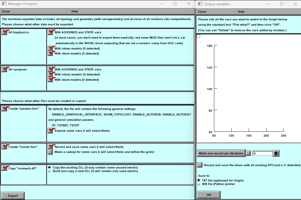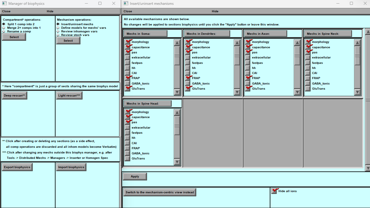 However, if you make any changes or add new mod files, you must activate build_mechs.bat to compile the NEURON *.mod files. This step is essential to ensure the proper functioning and integration of the NEURON modules into your system.